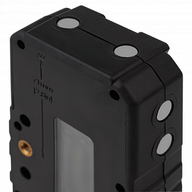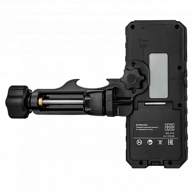 - Высокая информативность – устройство оборудовано акустическим извещателем, позволяющим фиксировать положение лазерной плоскости «на слух», а также светодиодными индикаторами и ЖК-дисплеями с подсветкой на лицевой и тыльной стороне корпуса, за счет чего обеспечивается надежное считывание показаний при любом положении изделия относительно пользователя.