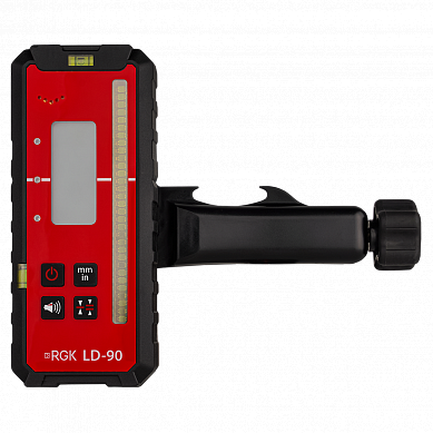 Приёмник излучения RGK LD-90 позволяет расширить радиус действия лазерных нивелиров до 300 м, обеспечивая выявление лазерной плоскости и определение ее точного положения на дистанциях, когда маркер от проецирующего прибора визуально неразличим. Изделие представляет собой цифровой инструмент с батарейным питанием, снабженный сенсором шириной 130 мм и органами индикации и управления, который может устанавливаться на нивелирную рейку с помощью комплектного держателя.