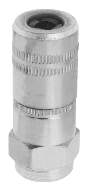 Головка шприца - четырехлепестковый соединитель для консистентной смазки для высокого давления Ø 15 мм, длина 37 мм с запорным клапаном. Головка соединителя и лепестки изготовлены из закаленной стали. Максимальное рабочее давление: 500 бар. Соединительная резьба: 1/8" NPT (F).