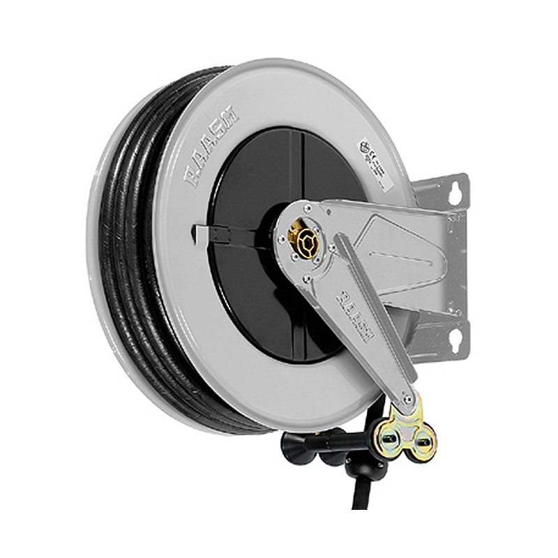 Открытая автоматическая катушка RAASM с поворотным кронштейном и шлангом 15м предназначена для раздачи воздуха или воды с давлением до 20 бар.