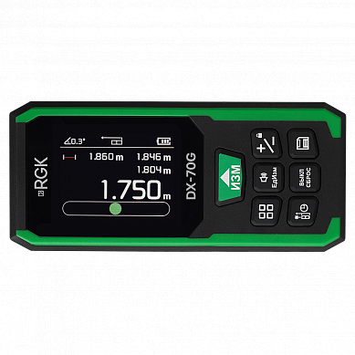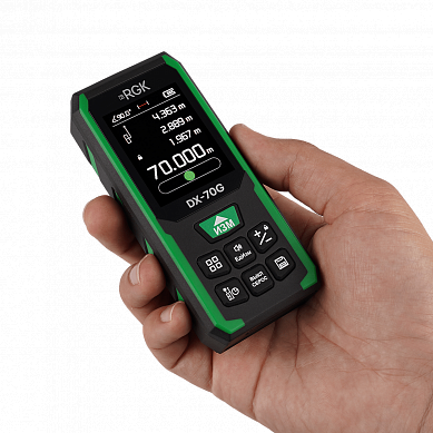 Лазерный дальномер RGK DX70G относится к компактным измерительным приборам строительного назначения, которые применяются для определения линейных размеров и расстояний, и угловых измерений, с расчетом дополнительных параметров. Модель предназначена для использования на дистанциях до 70 м и отличается от более дешевых изделий с таким же диапазоном расширенным перечнем поддерживаемых функций, улучшенной наглядностью и меньшей погрешностью, обеспечивая 1,5-миллиметровую точность.