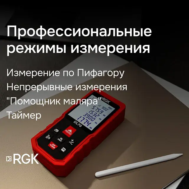 К другим полезным функциям дальномера RGK DL70 (с поверкой) можно отнести: