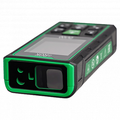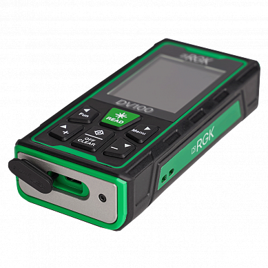 Дальномер RGK DV100 оснащен мощным лазером, который позволяет измерять расстояния на удалении до 100 метров с двухмиллиметровой точностью, что позволяет работать не только в помещениях, но и на улице. Отличительной особенностью дальномера RGK DV100 является наличие яркого лазерного маркера, облегчающего наведение на цель.