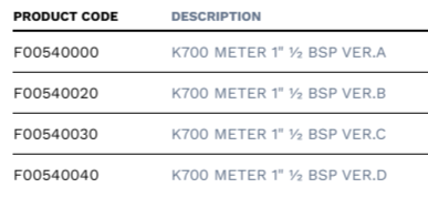 Механический расходомер. Разработан для измерения точного количества отпускаемого (топлива или смазочных материалов) для частного (некоммерческого) использования. Эти расходомеры надежны, недороги, легко устанавливаются. Их легко калибровать на рабочем месте. Используются также на самотечных линиях благодаря низкому сопротивлению потоку. Модель K700M: 4-разрядная промежуточная цифра (максиму