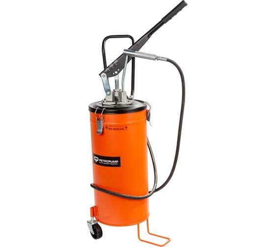Ручной солидолонагнетатель Petropump объемом 15 кг для раздачи консистетной смазки вязкостью до NLGI 3. Производительность составляет до 9г/ход, рабочее давление до 275 бар.