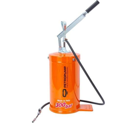 Ручной солидолонагнетатель Petropump 16 кг, 300 бар PP210009 оснащен перекрывающим клапаном и гибким шлангом с 4-х лепестковым фитингом