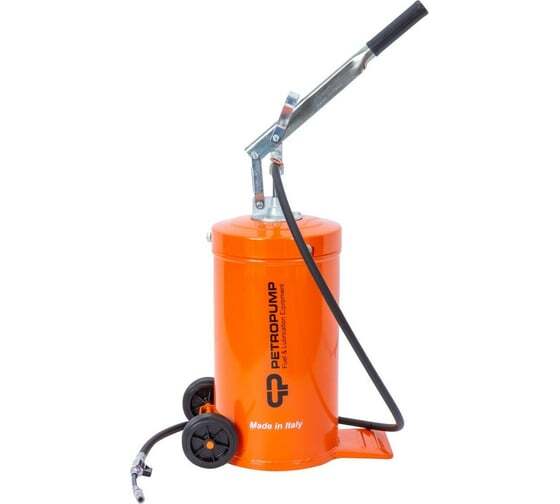 Мобильный солидолонагнетатель с ручным рычажным насосом и емкостью 16 кг предназначен для регулярного легкого и быстрого обслуживания инструментов, машин и механизмов, используемых в сельском хозяйстве, автотранспортной и иных сферах. Полностью разработан, произведен и сертифицирован в Италии. Длина рукава - 1,5 м; Производительность - 10 гр/ход (NLGI 2 при 15°C) Внутренний диаметр емкости - 22 см; Длина рычага насоса - 39 см; Длина ручки для переноса - 9 см.