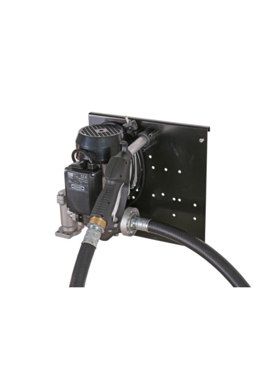 В комплекте - насос, пластина для крепления насоса, раздаточный механический пистолет, рукав 4м на выдачу топлива, держатель пистолета и комплект фитингов с обратным клапаном для подключения рукава на подачу топлива.