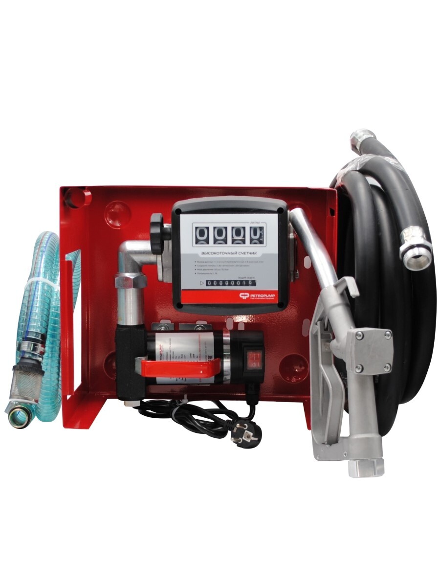 Настенный комплект для перекачки дизельного топлива и керосина - идеален для использования на стационарных и передвижных резервуарах. Питание насоса - 220В, производительность до 40 л/мин. Максимальная высота подъема до 4 м. Рабочее давление до 3 бар.