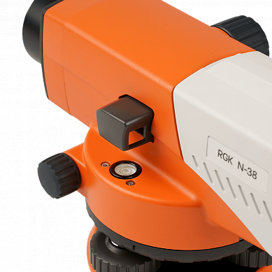 Высокая точность оптики нивелира усилена использованием компенсатора с магнитным демпфером. Система компенсации устраняет отклонение по горизонтали в пределах 15’ с точностью 0,2’, благодаря чему RGK N-38 обеспечивает стабильное изображение в зрительной трубе, а измерения сохраняют точность даже в сложных условиях работы. Для первоначальной установки нивелира в горизонтальное положение используются плавные наводящие винты, а контроль горизонта производится с помощью встроенного пузырькового уровня прибора.