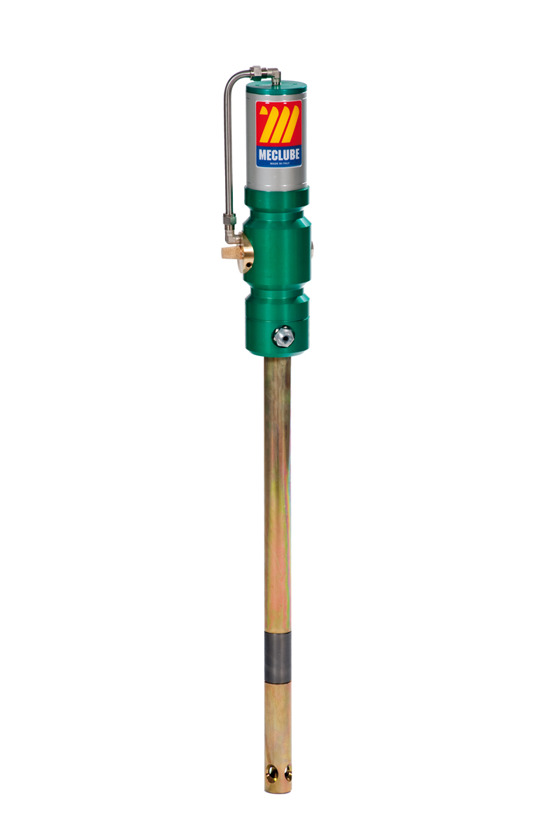 Пневматический насос Meclube с компрессией 60:1, серии 660 для перекачивания густой смазки из бочек 18-30 кг. Насос оснащен всасывающей трубой 480 мм и уплотнениями из полиуретана. Производительность насоса составляет до 1600 г/мин. Максимальное давление подачи 8 бар. Соединение на впуск воздуха: BSP F1/4"G. Соединение на выход смазки: BSP M1/4"