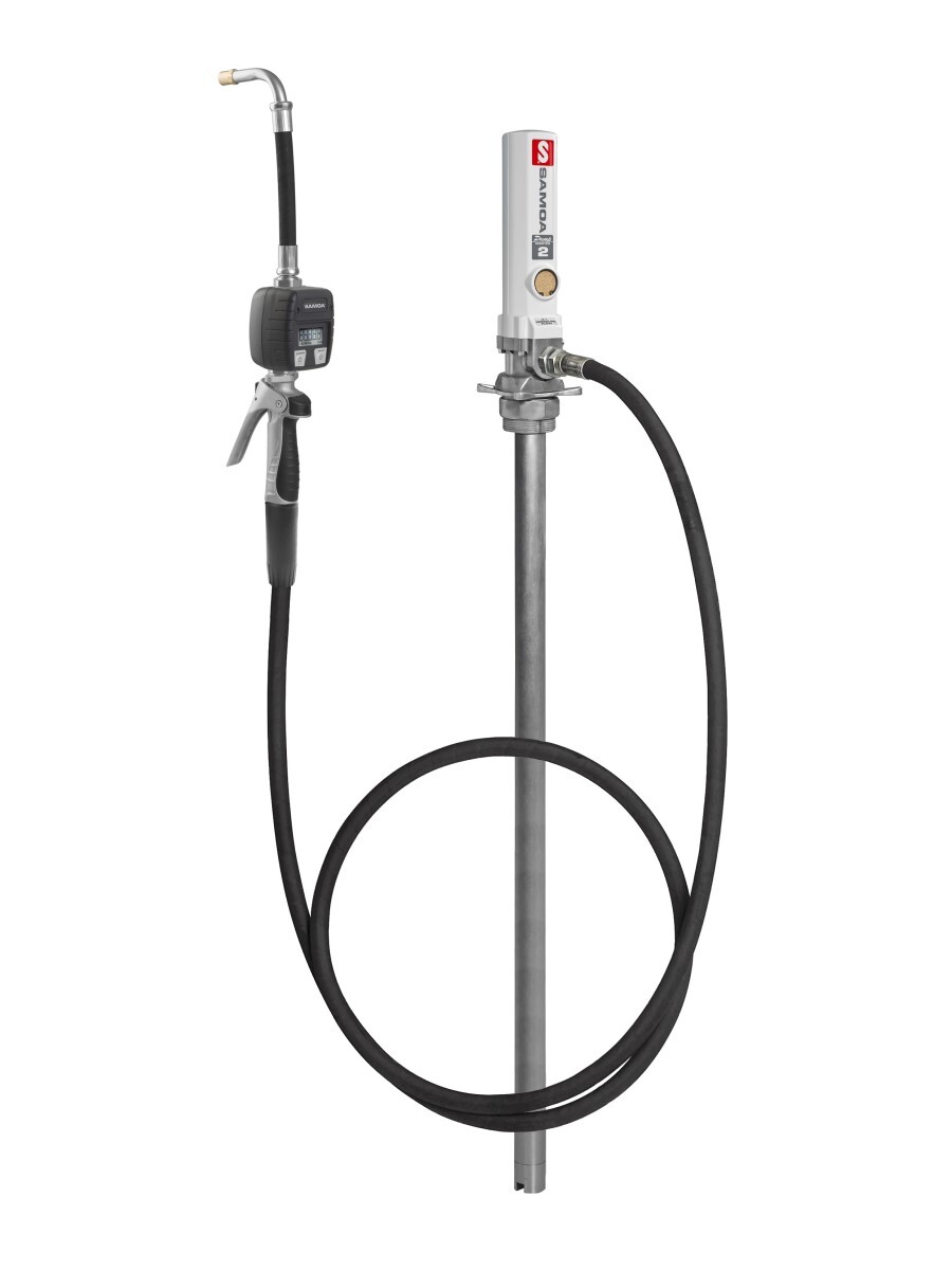 Комплект для перекачки масел с насосом SAMOA PM2 эффективную раздачу масла. Расход масла регулируется при помощи воздушного клапана и регулятора давления (в комплект не входят). Насос легко и быстро переставляется с пустой бочки на полную.