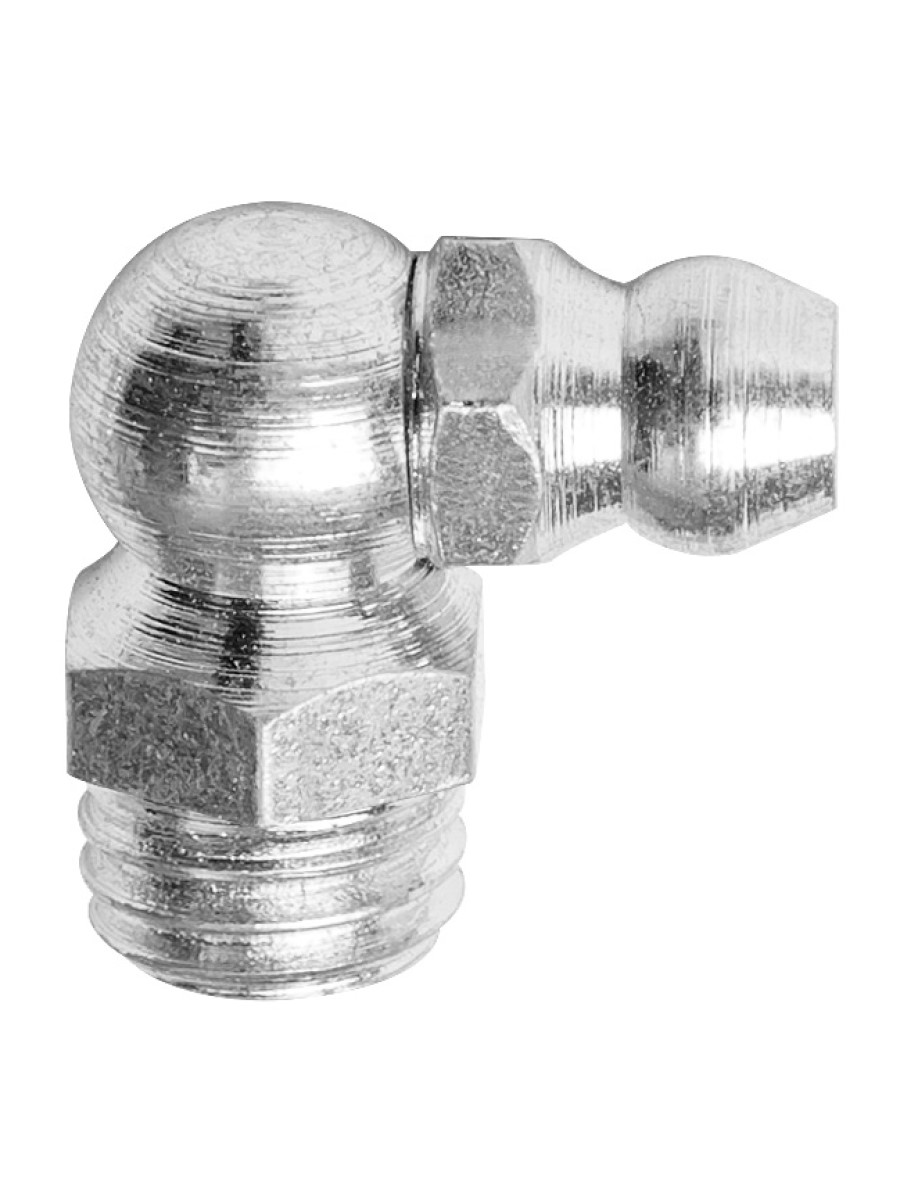 Ниппель (гидравлическая пресс-масленка) для консистентной смазки MT 508 угловой (90 градусов), предназначен для подачи консистентной смазки в труднодоступные рабочие узлы для транспортных средств, техники и оборудования. Подача смазки осуществляется с помощью шприца. Материал исполнения - металл. Резьба метрическая М10 x 1,00.
