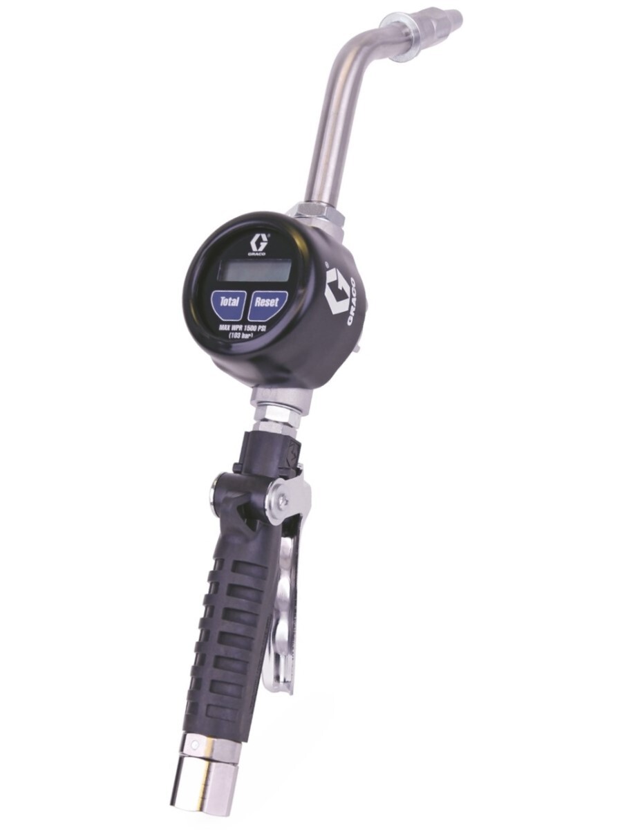 Раздаточный пистолет с расходомером Graco EM8 используется для раздачи масел и антифриза. Производительность до 30 л/мин, максимальное рабочее давление — 103 бара, подключение 1/2" NPT. Пистолет имеет удобную рукоятку, герметичную электронику (IP69) от попадания пыли и воды во время мойки.