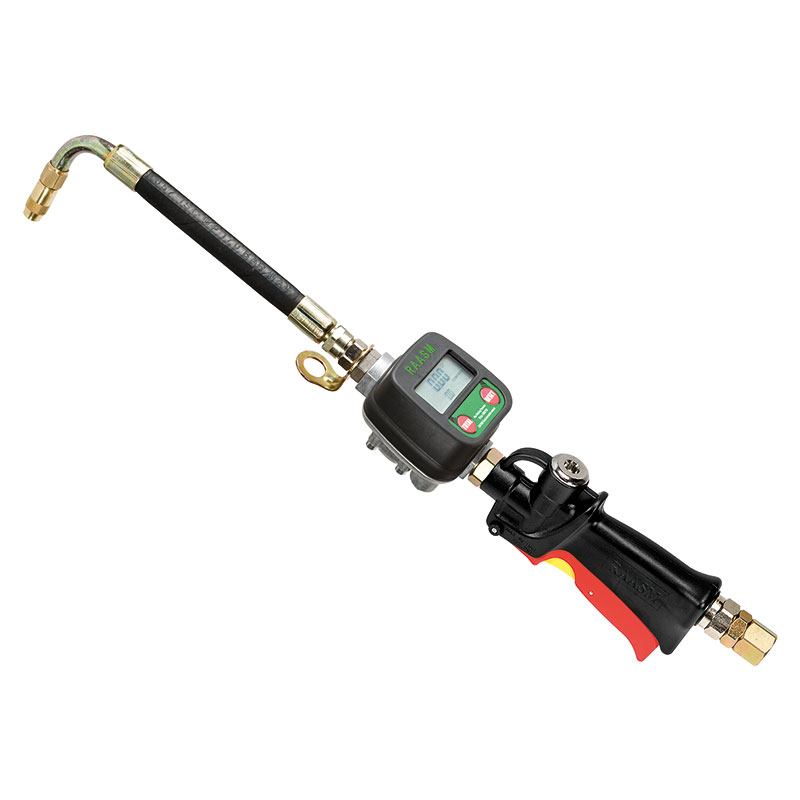 Пистолет с электронным счетчиком для раздачи масла с производительностью до 30 л/мин. Корпус пистолета изготовлен из технополимера. Резьба впускного шарнира 1/2" (F). Полуавтоматический каплеуловитель 16 мм. Оснащен фильтром, кнопкой блокировки и гибким носиком.