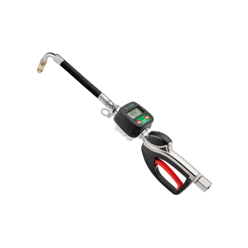 Пистолет со счетчиком RAASM серии 65AP, используется в маслораздаточных установках с производительностью до 65 л/мин и предназначен для отпуска трансмиссионного, гидравлического, моторного масла. Пистолет имеет эргономическое исполнение и облегченный корпус, изготовленный из прочного алюминиевого сплава. Вмонтированный электронный расходомер обеспечивает учёт отпускаемого материала. Оснащен устройством управления открытия с шаром из нержавеющей стали, шарниром на входе 1/2'' F, гибким наконечником с полуавтоматическим соплом Ø 21 мм.