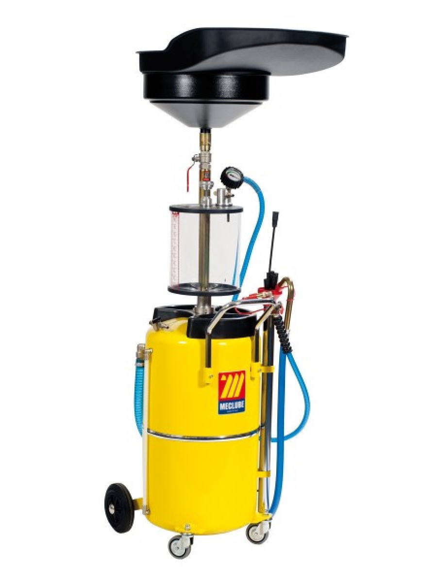 Пневматический маслосборник с колбой и чашей для слива Meclube с емкостью 90 л для быстрой откачки моторного масла подходит для любых транспортных средств. После создания вакуума в баке, маслосборник работает в автономном режиме без подключения к компрессору. Температура масла должна быть в диапазоне 60° - 80°C. Откачку масла необходимо производить при выключенном двигателе, сразу после его остановки. Колба позволяет следить за количеством и качеством откачиваемого масла. Пневматическая откачка воздуха из бака ( макс. давление 0,5 бар).