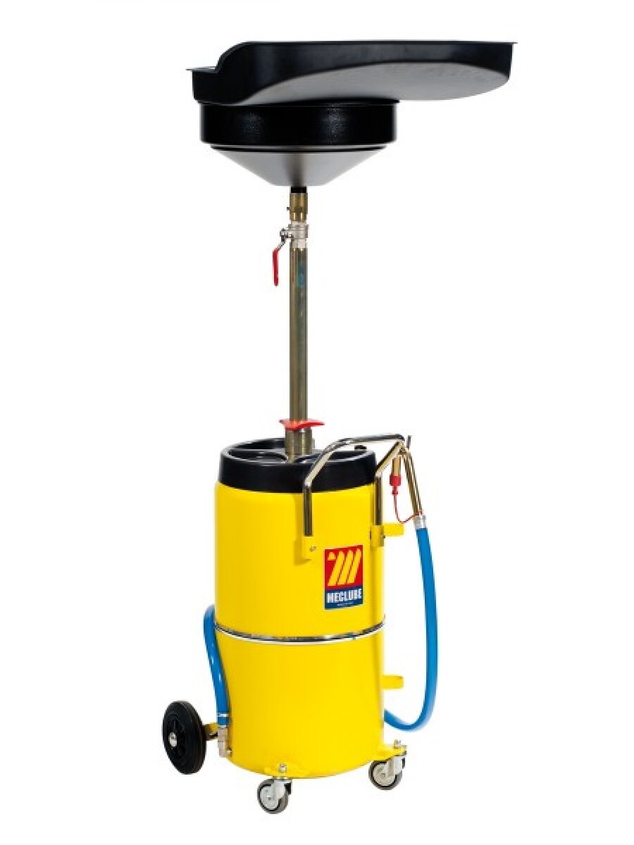 Устройство для слива масла Meclube предназначено для слива масла из моторов, трансмиссий и дифференциалов. Воронка объемом 20 л имеет решетку для фильтров, имеет возможность поворота на 360° и подлежит регулировке по высоте 1200-1850 мм. В баке объемом 90 л предусмотрена пневматическая откачка воздуха (макс. давление 0,5 бар), на нем имеется индикатор уровня и 3-х секционных лоток для инструментов.