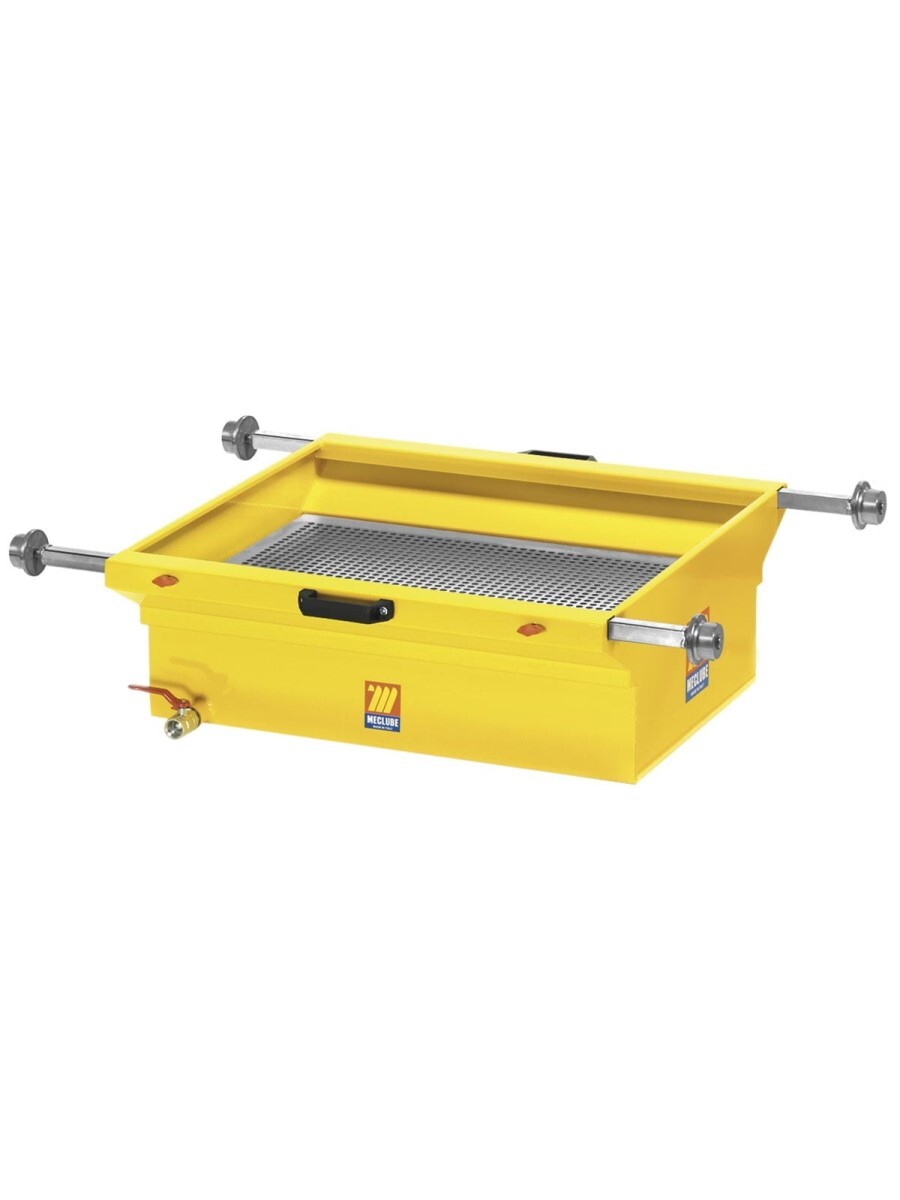 Сливная ванна Meclube для смотровых ям емкостью 90 л имеет регулируемые опоры для бака (мин. 800 мм - макс 1200 мм) и решетку для фильтров, шаровый кран для слива масла F 3/4"G.