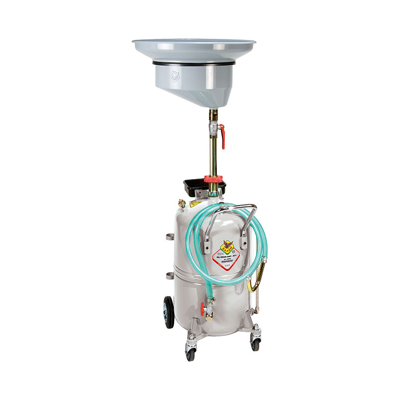 Установка для слива отработанного масла RAASM 42090/C1, предназначена для удаления самотеком моторного масла, масла коробки передач и дифференциала всех автомобилей установленных на подъемнике или яме. Установка представляет собой мобильное и простое устройство, состоящее из маслосборника 15 литров с регулируемой высотой, накопительного резервуара ёмкостью 90 литров, указателя уровня, сливного шланга длиной 2 метра с изогнутым металлическим наконечником, съемного лотка для инструмента.