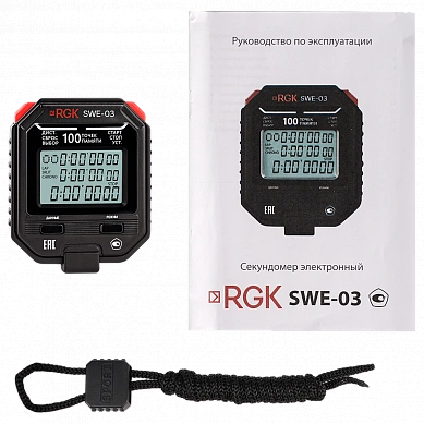 Секундомер электронный RGK SWE-03 с поверкой представляет собой хронометрический прибор с комбинированными функциями, который является средством измерений утвержденного типа и может использоваться при проведении официальных спортивных соревнований, для экспертиз, проверки качественных характеристик продукции и решения других задач в отраслях, подпадающих под Госрегулирование.