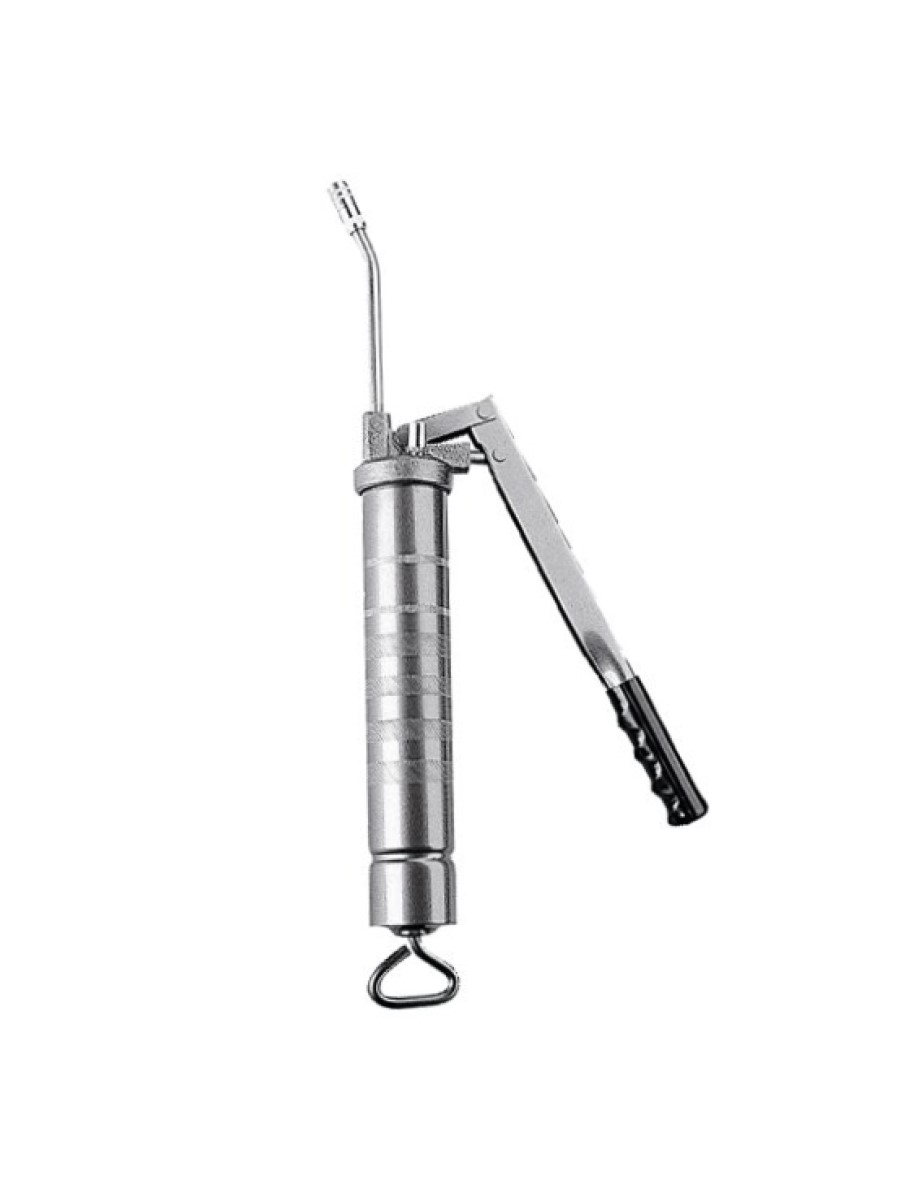 Ручной рычажный шприц для консистентной смазки объемом 500 см3 с жесткой трубкой с четырехлепестковым гидравлическим соединителем (артикул 710214) и упакован в плотный прозрачный пакет.