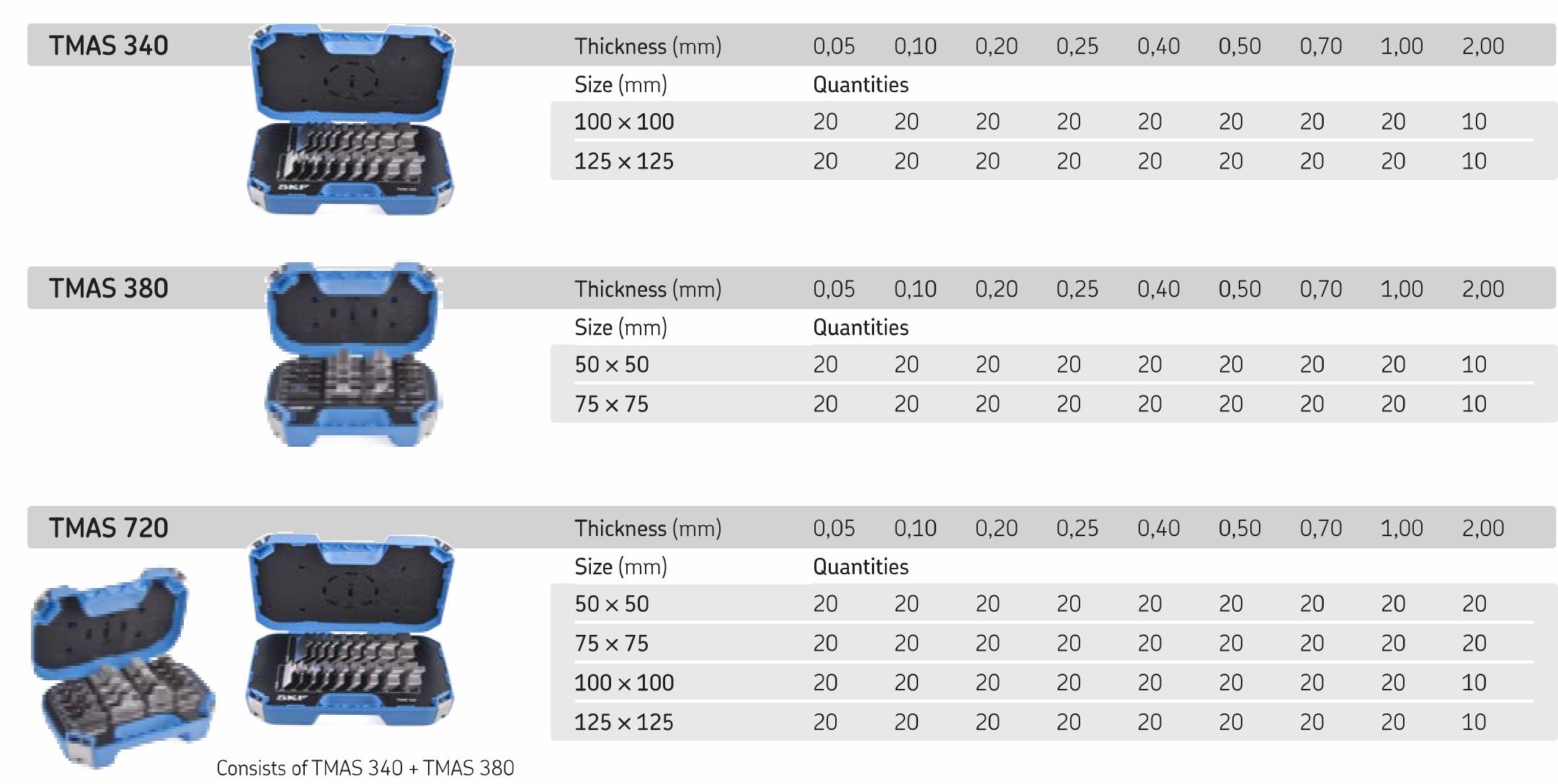 Комплект TMAS 720 состоит из комплектов пластин TMAS 340 и TMAS 380.