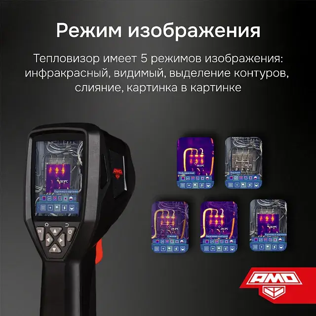 Тепловизор AMO T822 может одновременно отслеживать температуру в 3 точках - центральной, самой холодной и наиболее горячей. Последние две отображаются на экране яркими маркерами, что вкупе с функцией звуковой сигнализации (срабатывает при выходе температуры за установленные пределы) гарантирует, что вы точно ничего не пропустите.