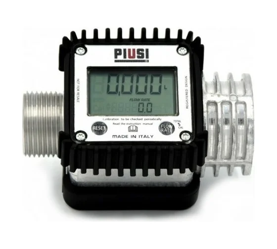 Цифровой турбинный расходомер для жидкостей с низкой вязкостью. Легко устанавливается в линию или на концах нагнетательной трубы. Снабжен дисплеем, устанавливаемым в различных положениях для упрощения считывания. Является идеальным инструментом для контроля количества отпущенной жидкости. Прочный корпус и загерметизированная электронная плата делают расходомер пригодным для использования практически в любых условиях. Корпус из армированного полиамида. Турбина из полипропилена. Тип импульсного сигнала: одноканальный, с герконовым выключателем. Электронная плата с ЖК-дисплеем, с 5-разрядной промежуточной цифрой от 0.1 до 99999, с 6-разрядной общей цифрой от 1 до 999999. Возможность сброса суммарного счетчика. Указание расхода жидкости. Повторяемость 0.2 %. Потеря давления < 0.15 бар при 120 л/мин. Имеет возможность калибровки. Работает на двух батарейках типа AAA.